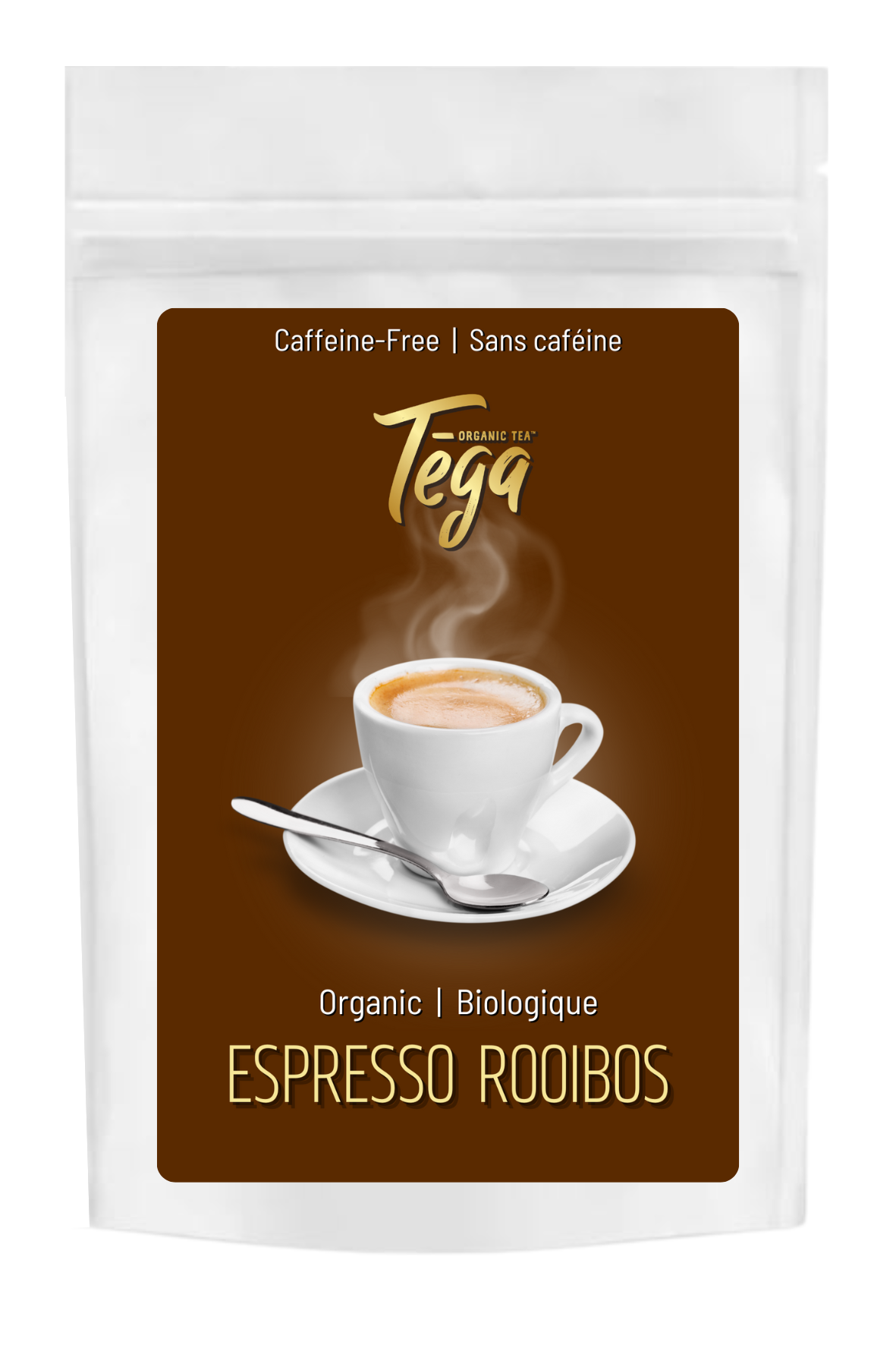 Tega Organic Espresso Rooibos is ethically sourced, small-batch blended, and packaged in Canada in a resealable freshness bag for your convenience. Enjoy knowing this eco-friendly product is crafted with a commitment to sustainable practices.